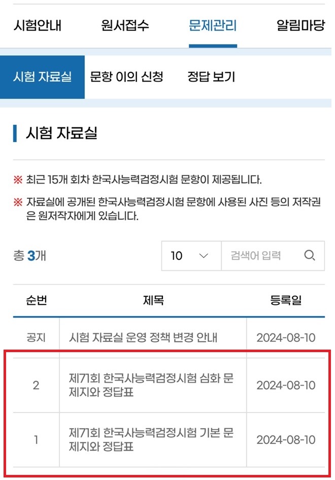 금일 치러진 71회 한국사능력검정시험의 정답은 이미 금일 오후 14시경에 발표가 되었습니다. 답안지는 한국능력검정시험 홈페이지 > 문제관리 > 시험자료실에 업로드되어 있으니 참고하시기 바랍니다.